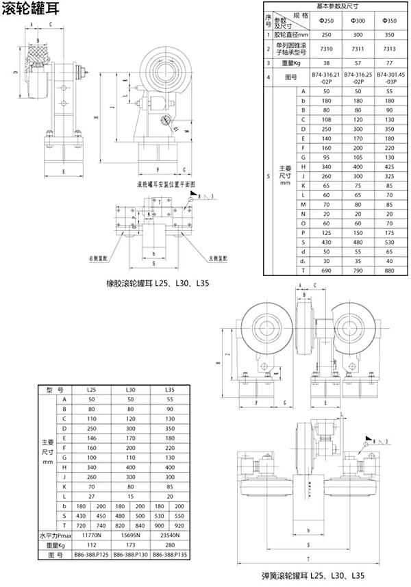 雙輪液壓滾輪罐耳是參考多年來各礦井使用滾輪罐耳的形式,廣泛吸取用戶的使用意見改進而成??筛鶕脩舻氖褂脳l件和要求,可采用橡膠緩沖、彈簧緩沖、碟簧緩沖、液壓緩沖、復合緩沖。其使用壽命長、安全可靠性高、維護方便等特點。